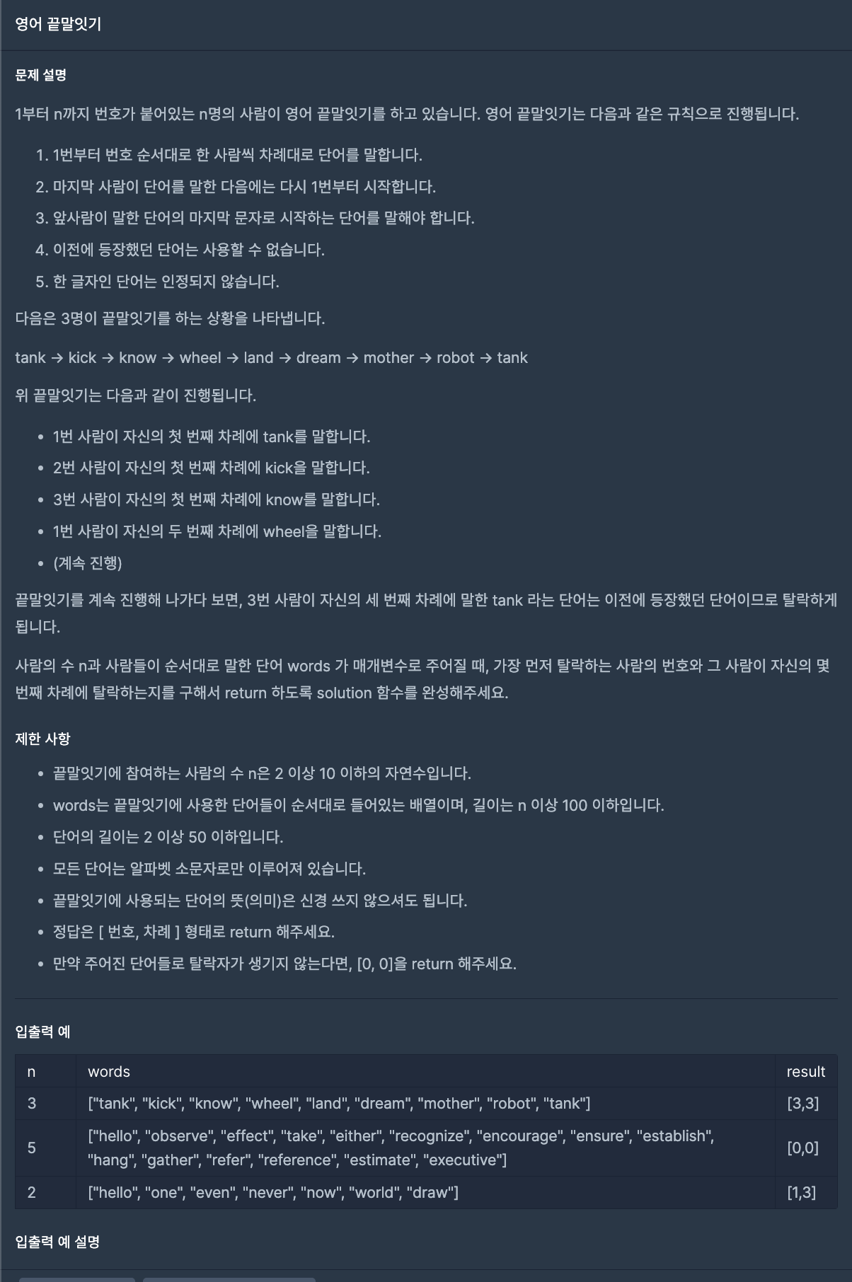 const solution = (n, words) => {