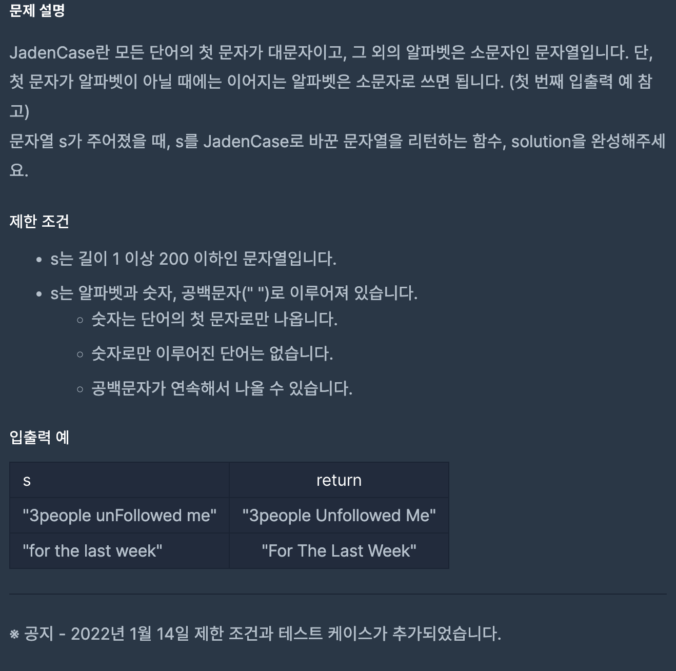 (프로그래머스 lv.2) JadenCase 문자열 만들기